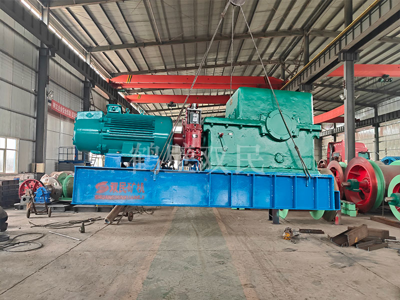 本絞車主要用于煤礦、金屬礦和非金屬礦豎井井筒掘進(jìn)時(shí)懸吊吊盤、水泵、水管、注漿泵、風(fēng)筒等掘進(jìn)設(shè)備和張緊穩(wěn)繩,該絞車系雙鋼絲繩懸吊。將減速機(jī)上的差動(dòng)手把放在差動(dòng)位置,若張緊穩(wěn)繩,可使兩根穩(wěn)繩的張緊力保持相等;若懸吊水管、注漿管、風(fēng)筒等管類設(shè)備,可保證其被懸吊管類設(shè)備與地面保持垂直的狀態(tài)。如果懸吊吊盤等盤狀設(shè)備,需將其差動(dòng)手把放在直通位置,才能實(shí)現(xiàn)兩繩繩速的一致。