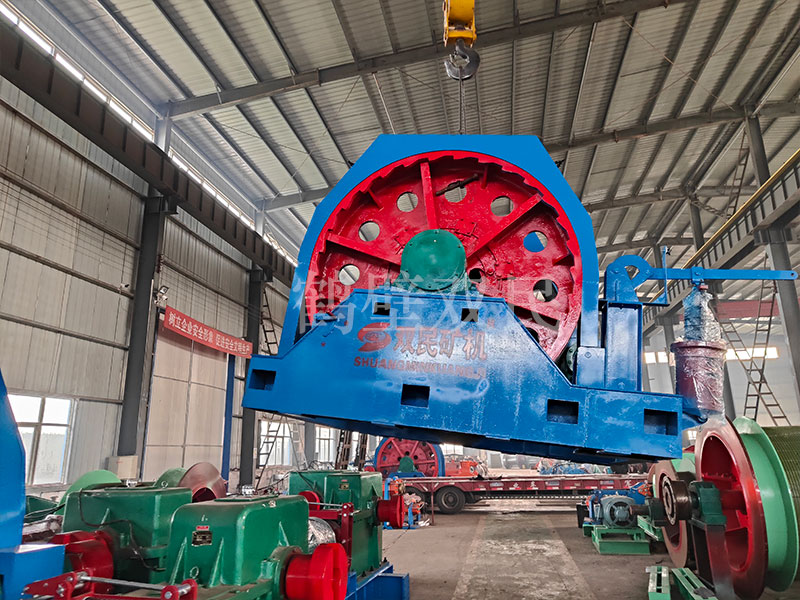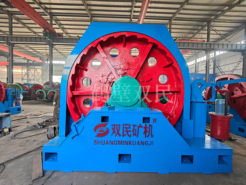 結構特點本絞車主要用于煤礦、金屬礦和非金屬礦豎井井筒掘進時懸吊吊盤、水泵、水管、注漿泵、風筒等掘進設備和張緊穩繩,該絞車系雙鋼絲繩懸吊。將減速機上的差動手把放在差動位置,若張緊穩繩,可使兩根穩繩的張緊力保持相等;若懸吊水管、注漿管、風筒等管類設備,可保證其被懸吊管類設備與地面保持垂直的狀態。如果懸吊吊盤等盤狀設備,需將其差動手把放在直通位置,才能實現兩繩繩速的一致。