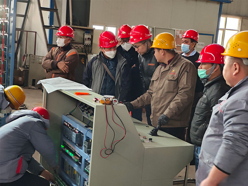 在理論指導(dǎo)之后,電工車間的張主任,又與客戶一起,帶上安全帽,來(lái)到電工車間。實(shí)踐指導(dǎo)客戶現(xiàn)場(chǎng)安裝線路,連接每一臺(tái)電器設(shè)備。
