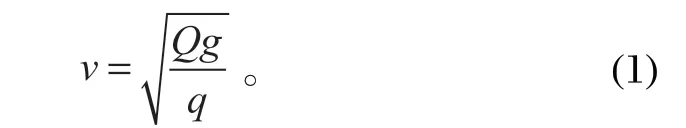 在井口附近位置,對罐道繩某一點施加一垂直沖擊力,使罐道繩產生橫向振動。振動波在鋼絲繩上的傳遞速度與鋼絲繩所受張力的關系如下: