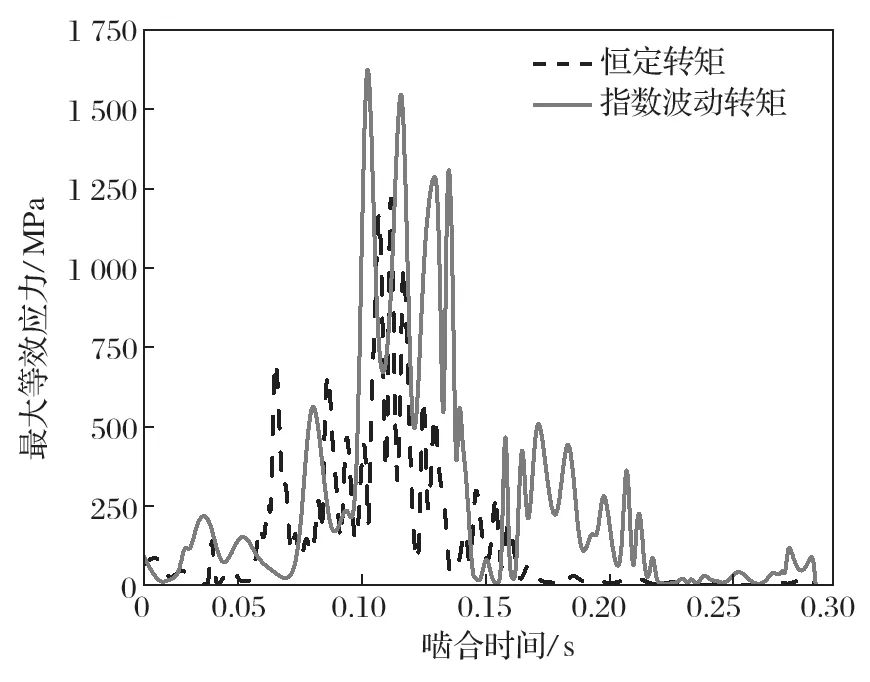 圖14 恒定轉(zhuǎn)矩與指數(shù)波動轉(zhuǎn)矩zui大等效應力的對比